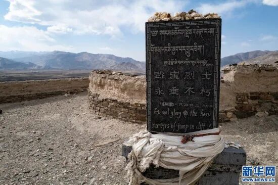 這是在江孜宗山古堡拍攝的跳崖英雄紀念碑。新華社記者 孫瑞博 攝